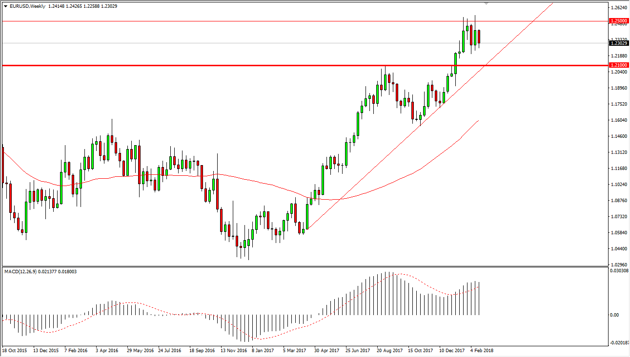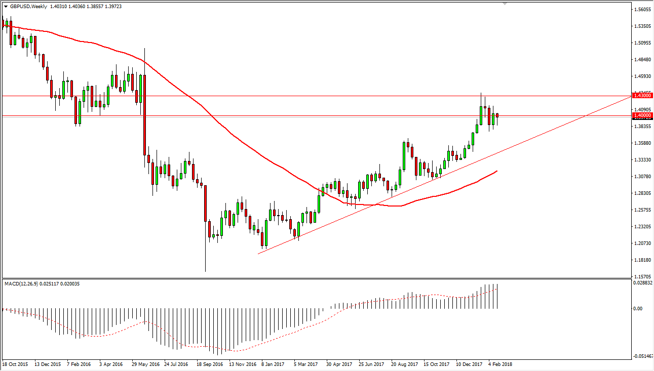The EUR/USD pair spent most of the week selling off, but I think going forward we are probably looking at more of a sideways grind than anything else. I expect this week to be very choppy, but I do know that the last 3 weeks have all had higher lows, a slightly positive sign. As we build momentum, I believe that we are trying to finally have enough inertia to break above the 1.25 level. I don’t know it’s going to happen this week, but I do think it will happen relatively soon.