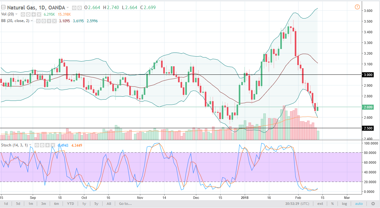 Natural gas markets rallied a bit during the trading session on Tuesday, as we finally saw a green candle. However, this market has been totally crushed, and it looks likely that we are going to try and get a bit of a relief rally, perhaps as high as $3. I would love to see some type of rally that I can sell on signs of exhaustion, and I believe that the $2.50 level underneath is massive support. Because of this, I think we are far too overdone, and at this point we need to see some type of opportunity to short again, but not at these low levels. We have left the most bullish time of year for natural gas, and as temperatures rise in the United States, prices will fall and the natural gas pits. I believe that we have seen the highs in this market for the year as well.
