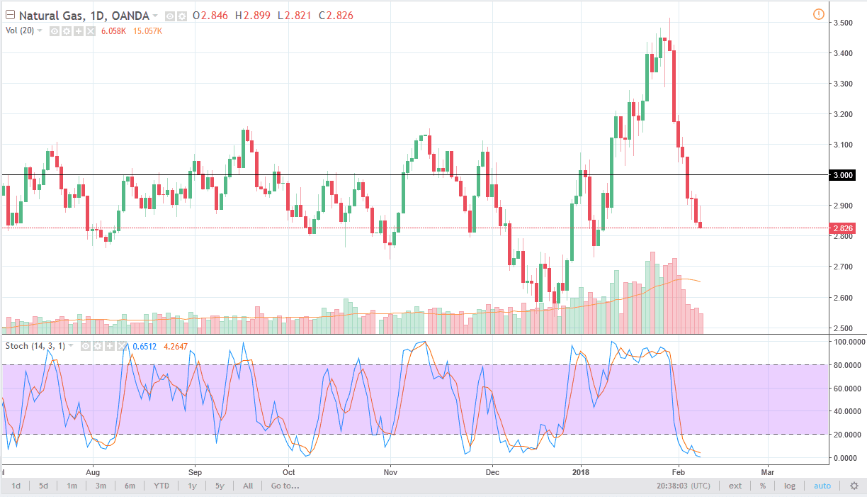 Natural gas did something that was quite impressive today: continue to fall. The market initially tried to rally, but then rolled over and ended up forming a shooting star, and that is of course a negative sign. It looks as if the sellers are going to continue to pressure this market, but if you are not already short of natural gas, is can be difficult to get involved at these low levels. You would be “chasing the trade”, which is a great way to lose money. However, if we get some type of rally I am more than willing to start selling it. I would love to see this market tried to rally towards the $3 handle, but we may not even get that opportunity. Eventually, buyers will return, or at least short covering will happen, but in the meantime, I think that the market is one that has only one direction.
