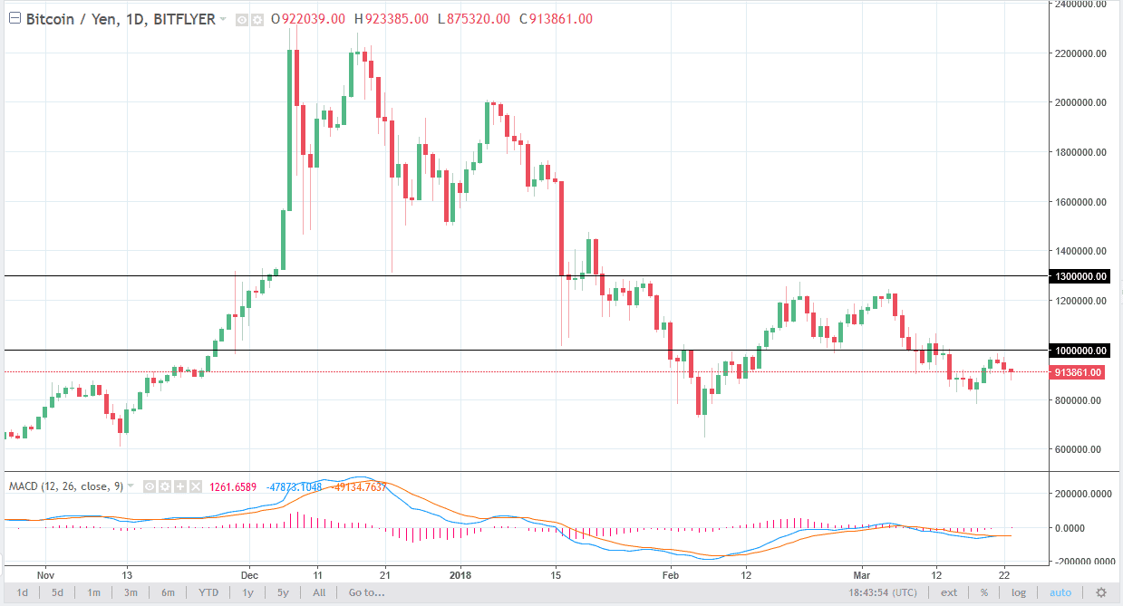 Bitcoin fell initially during the trading session on Friday, as the Japanese yen picked up a bit of momentum. I believe that the market will continue to be very choppy with the ¥1 million level above being massively resistive. If we can break above there and extend through the resistance barrier that formed it there, we could go much higher. I would consider the market broken to the upside if we can clear the ¥1.1 million level. Until then, I suspect there is still more downward pressure than anything else. I see support below at the ¥800,000 level, so we break down below there I think we would probably go to the ¥650,000 level underneath which was a massive support level back in February. Volatility will continue to be a major issue down.