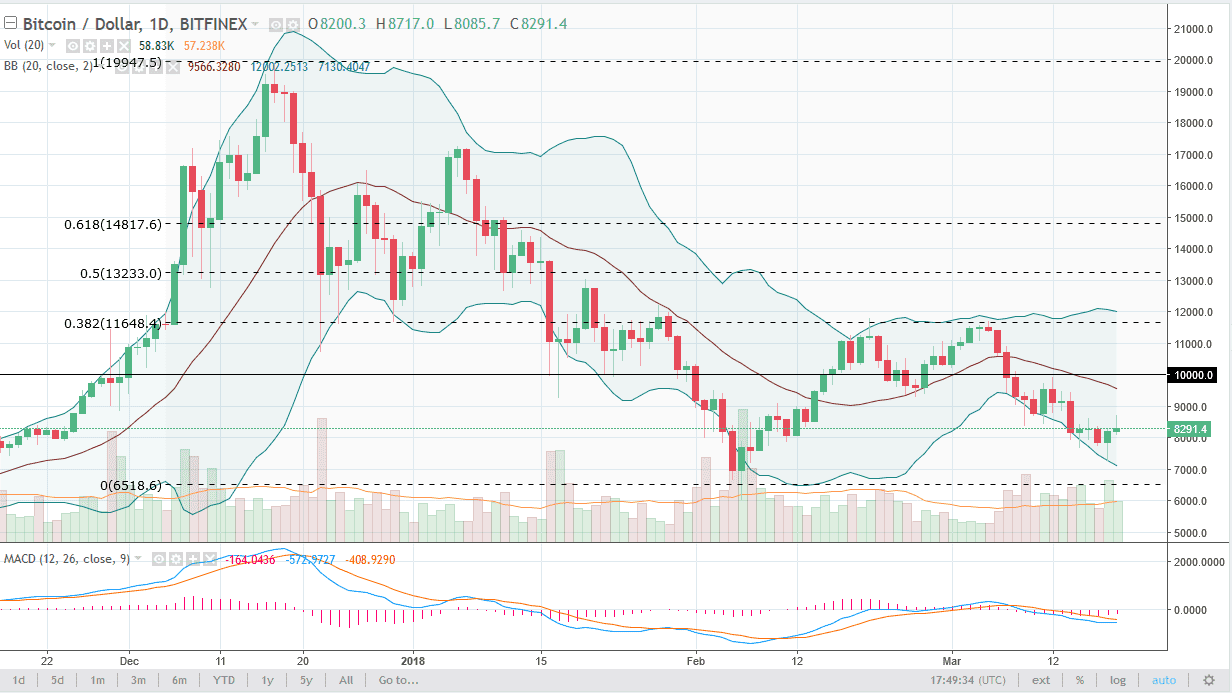 Well, Bitcoin tried to rally during the day on Monday, but as you can see is starting to roll over already. At some point, it looks as if we will continue to see selling pressure every time we rally, so I think that the market will eventually try to break down to a fresh, new low, perhaps reaching towards the February level near the $7000 level. If we break down below there, we could eventually wipe out the lows from February and continue to go much lower, reaching towards the thousand dollars first, and then eventually $4000. At this point, Bitcoin looks dead in the water, especially considering that the US dollar has been strengthening. Crypto currency markets are losing a lot of interest, as the retail traders have left. The question now is whether the institutional traders will stay. If they do, this will become just another currency market, as the 20% moves in just a few hours will be a thing of the past, unless of course we melt down.