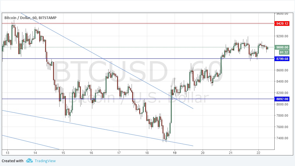 Yesterday’s signals produced a long trade from a bullish bounce at $8,800 which would still be open.
