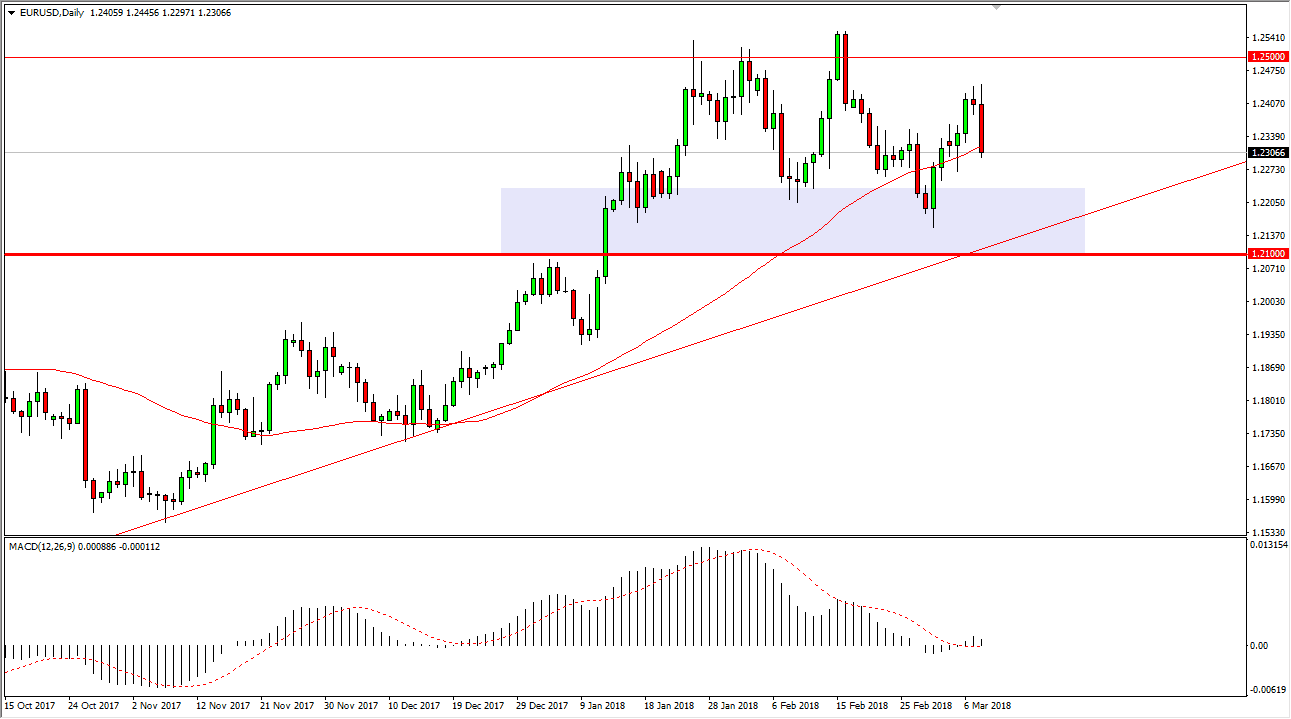 The EUR/USD pair initially rally during the trading session on Thursday, but then rolled over rather drastically as the ECB policy statement suggested that perhaps we may see less quantitative easing, but that isn’t coming soon. The market had anticipated that the ECB was going to start tightening relatively soon, and this has put that into down. As we roll over into the Friday session, we now start to pay attention to jobs numbers in the United States, so we may get a complete reversal if those numbers get more of a “risk on” attitude going in the market. You’ll notice that there is an uptrend line underneath that the 1.21 handle, as well as significant horizontal support. I believe that eventually, the buyers will come back into this market place, picking up value. However, if we were to break down below that level, it would change everything and send this market much lower.