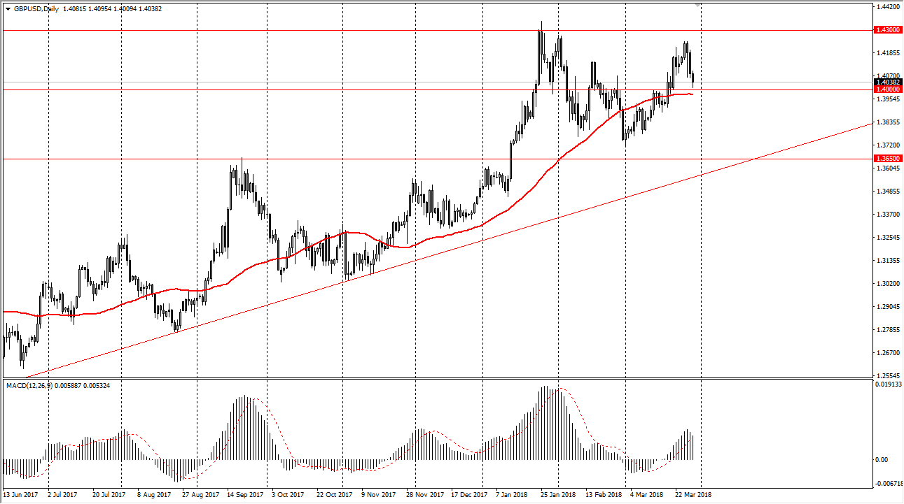 The British pound has fallen during the trading session on Thursday but remained above the vital 1.40 level. I believe that the 1.40 level is structurally important, just as it is psychologically important. The 50-day EMA sits just below, and the fact that we started to bounce a bit towards the end of the day, suggests to me that we are going to rally from here. The 1.42 level will be targeted, followed by the 1.43 level. I think if we can break above there, the market then goes to the 1.45 handle.