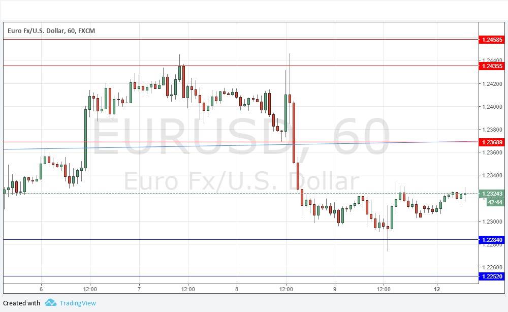 Last Thursday’s signals may have provided both a profitable long trade entry from the bullish candlestick rejecting the support level identified at 1.2369 and a short trade entry from the very large doji candlestick which rejected the resistance level at 1.2436. It would probably be wise to exit the remainder of the short trade immediately.