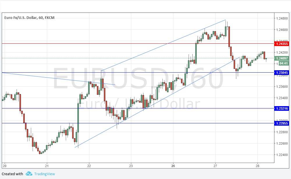 Yesterday’s signals produced a profitable long trade from the hourly pin candle rejecting the support level at 1.2385.