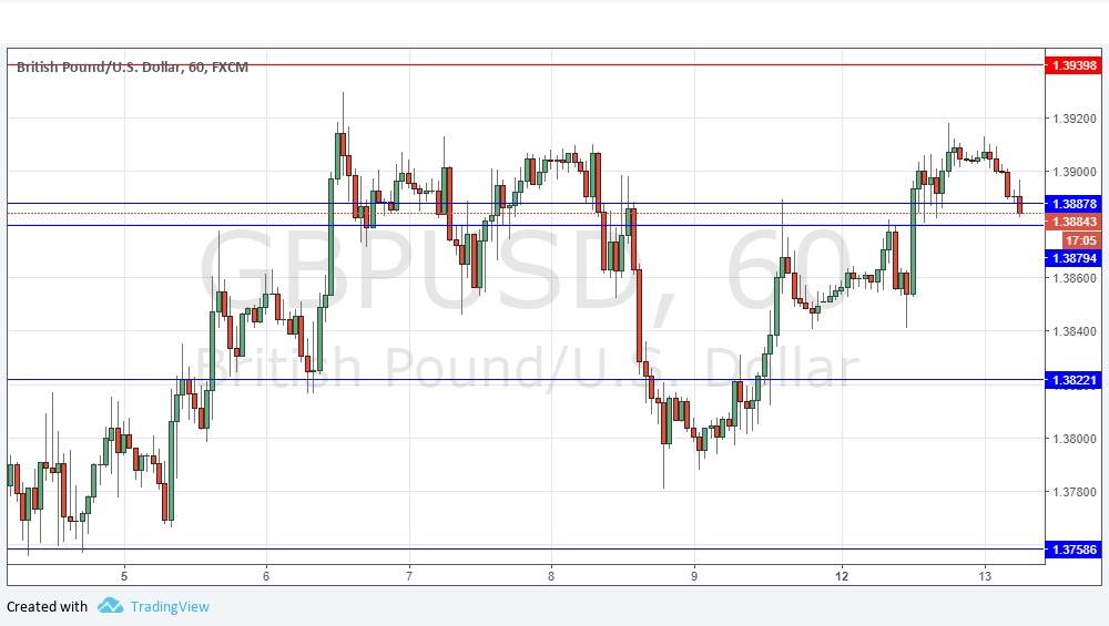 Go long following a bullish price action reversal on the H1 time frame immediately upon the next touch of 1.3879 or 1.3822.
