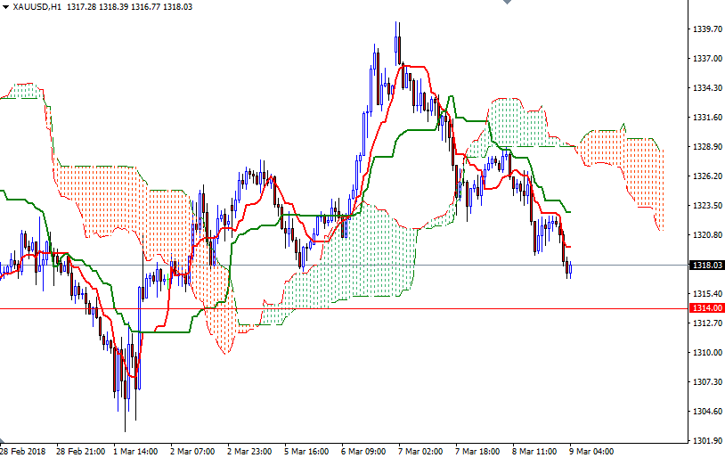 Gold prices fell for a second straight session and settled at $1321.76 an ounce with investors cautious ahead of the Labor Department’s monthly non-farm payrolls report. The greenback rallied following the European Central Bank’s policy update. World stock markets were mostly higher yesterday. XAU/USD is currently trading at $1318.03, lower than the opening price of $1321.56.