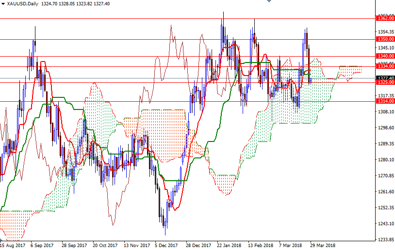 The market is trading just above the Ichimoku clouds on the H4 chart, but we are inside the daily cloud. Although the Tenkan-Sen (nine-period moving average, red line) and the Kijun-Sen (twenty six-period moving average, green line) are positively aligned on both the weekly and the daily charts, they also indicate that there is no strong momentum (to break out of the trading range that the market has been trapped for the past 12 weeks). Trading below the hourly clouds suggests that downside risks remain and XAU/USD is likely to test 1321/0 if the support in 1325/4 is broken. A successful break below 1320 opens up the risk of a drop to 1316/4. Below there, the 1308/5 area stands out as a key technical support.