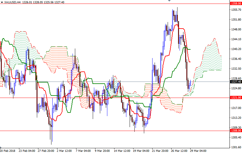 Gold prices fell $20.03 an ounce on Wednesday as the market’s inability to hold above the $1340-$1339 area and better-than-expected U.S. economic data prompted investors to unwind bullish bets. The U.S. dollar gained after a Commerce Department report showed that gross domestic product rose at a 2.9% annual rate in the fourth quarter. The precious metal extended its losses after prices fell below the $1334 level, and tested the support at around $1325 as anticipated. XAU/USD is currently trading at $1327.40, slightly higher than the opening price of $1324.70.