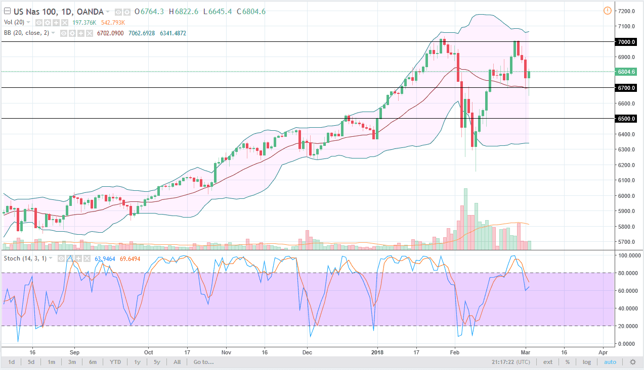 The NASDAQ 100 did the same thing during the day, initially falling rather significantly, but found enough support just below the 20 SMA and the 6700 level to turn things around and form a nice-looking hammer by the end of the day. It looks as if the buyers are ready to step in and pick up value when we dip, which has been the case for a while. I think ultimately the market will try to get to the 7000 handle, which has been massively resistive. A break above there becomes more of a “buy-and-hold” scenario. On the other hand, if we break down below the bottom of the range for the session on Friday, the market more than likely unwinds down to the 6600 level first, and then the 6500 level after that. Either way, I think it’s easier to buy dips in this market than it is to sell the market.