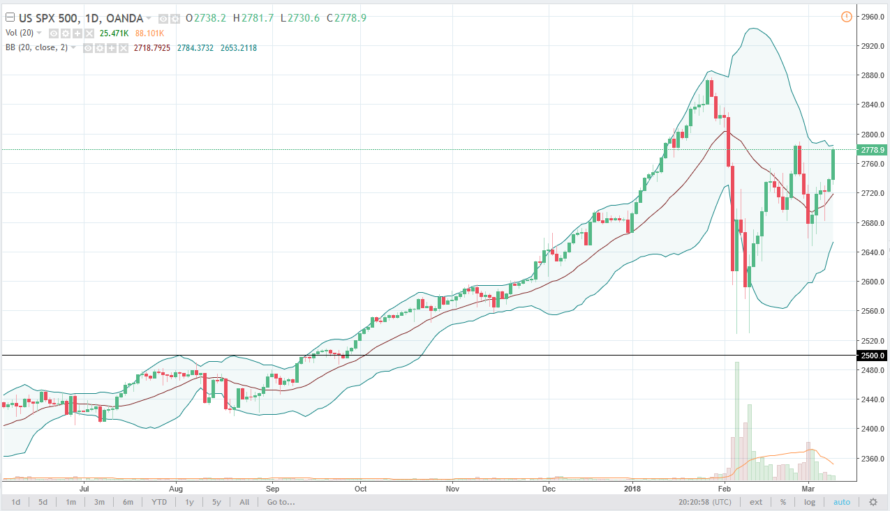 The S&P 500 rallied significantly during the trading session on Friday, gaining 1.5% as the jobs number from February came out much stronger than anticipated. Ultimately, the market looks likely to find buyers on dips, but we are approaching a significant resistance barrier in the form of 2800. I think you will have value hunters come back into play, and a break above the 2800 level should free this market to go looking towards the 2880 level. Ultimately, I have no interest in shorting this market after this jobs number, but I also recognize that a pullback is probably needed as we are getting a little bit to the overbought side.