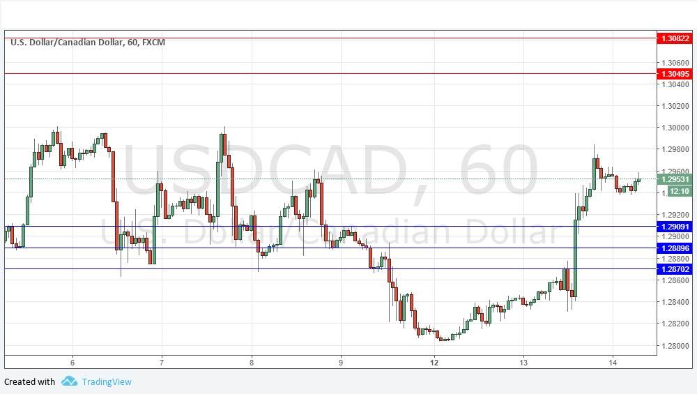 I wrote yesterday that it looked like a wise course of action would be to stand aside until one of the levels is reached. There are likely to be better opportunities in other currency pairs in the meantime. I was completely wrong. The price in fact rose strongly in line with a long-term bullish trend, which was unusual as the U.S. Dollar fell almost everywhere else. The Canadian Dollar is weak. The move has probably flipped all the previous resistance levels not far below to become support, so they might be new bases for long trade entries after a pull-back. Above, the psychological level of 1.3000 is close by and this may slow the advance, as it acted as a cap when the price was there previously a few days ago.