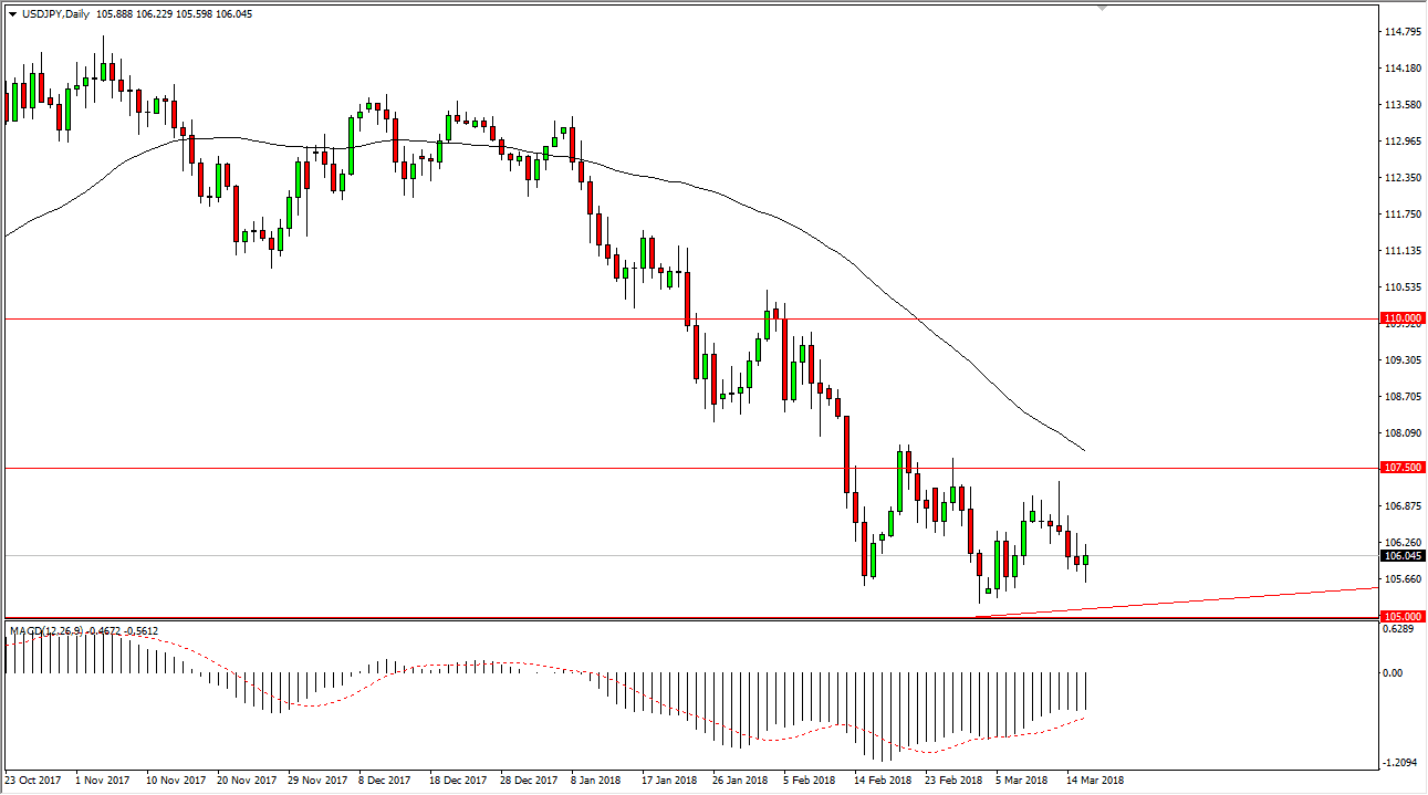 The US dollar has been very noisy against the Japanese yen during the trading on Friday, as traders went back and forth. We are hovering around the 106 handle, and I think that underneath we have massive amounts of support that should continue to influence this market. The 105.50 level underneath is support, and it extends down to the 105 handle. Beyond that, we have the uptrend line that should continue to offer buying opportunities as well. However, if we are going to break down below the 105 level, then I think the markets should dropped towards the 100 level. Remember, this is a currency pair that is highly sensitive to risk appetite, so pay attention to the overall attitude of stock market traders. We did close well, so that helps, but at this point I think we are going to go back and forth more than anything else. Expect a lot of short-term volatility, and perhaps a lot of back and forth trading today.