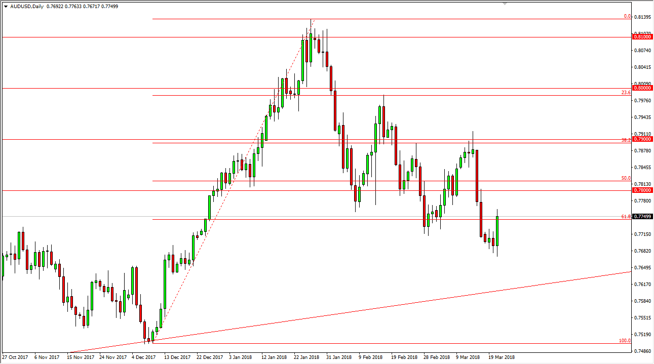 The Australian dollar initially fell during training on Wednesday but took off after the Federal Reserve announcement. However, I think we have a lot of resistance above, so it’s going to be interesting to see how this plays out. I think that there is most certainly more downside risk than of eventually, but you would need to see signs of exhaustion to start selling. In the short term, we could go as high 0.78, but it’s not until we break above there that I become a bit more convinced about the longer-term outlook for the Australian dollar to the upside. Otherwise, we could roll over and reach towards the 0.77 handle, and then perhaps even the uptrend line from the daily uptrend channel.