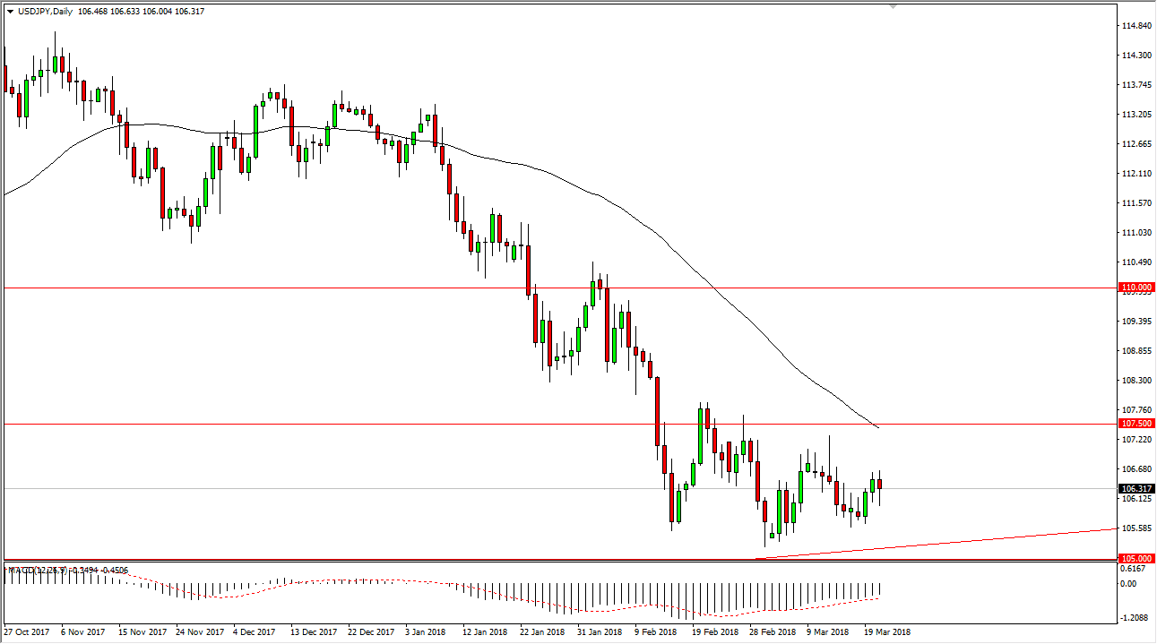 The US dollar initially pulled back during trading on Wednesday but found enough support underneath to bounce a bit. This is a market that’s going to be very choppy after the Federal Reserve announcement and the projection of future interest rate hikes. I think at this point, the market is probably going to continue to grind between the 105.50 level on the bottom, and the 107.50 level on the top. If we break down below the 105 level, the market breaks down significantly and reaches towards the 100 level. Alternately, if we can clear the 107.50 level, the market should then go looking towards the 110 handle. I think the one thing you can count on over the next couple of sessions is going to be a lot of choppiness, and it might be easier to trade the dollar against other currencies such as the EUR and the GBP.