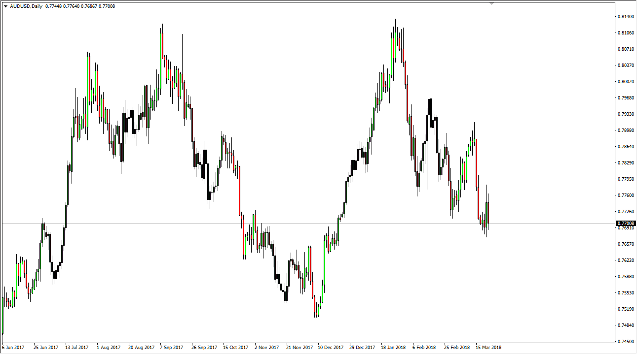 The Australian dollar initially tried to rally during the session but rolled over significantly to reach towards the 0.77 level. It’s at this point that I think most traders are starting to look for value, and it’s possible that they may find it. However, if we break down to a fresh, new low, then I think the market goes down to the 0.76 level, an area that is essentially the uptrend line of the longer-term uptrend channel. I think that the next couple of sessions will be crucial, and you should probably pay attention to gold markets as they could lead the way for Australian dollar traders as well. If we do rally, it’s going to be a very messy affair.