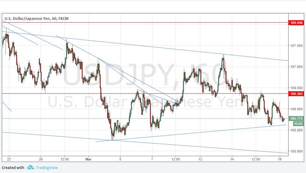 Last Thursday’s signals produced an excellent short trade from the bearish rejection of the resistance level identified at 106.37. It would be wise to have taken profit, or at least most of the profit, by now.