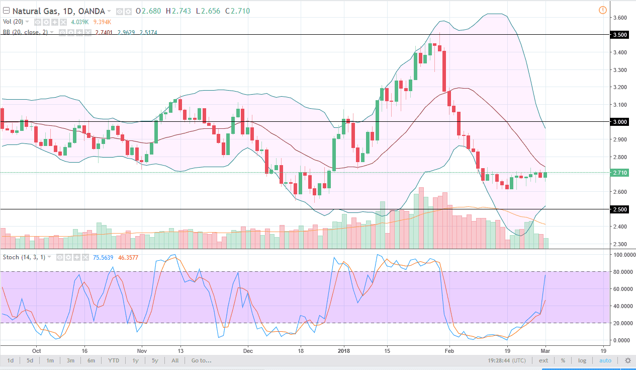 natural gas markets went back and forth during the day as well, settling on a 1% gain. In a market that is beaten-down as natural gas is, it’s significant that we haven’t fallen any further. When you look at the last week or so, you can see that we have been hovering just below the $2.70 level. I think that we will eventually rally, if nothing else because of a “short covering rally”, reaching towards the $3 level. I think that the $3 level is an area where you should see a lot of selling. I’m looking for a rally that I can continue to short, as I believe that the oversupply of natural gas will continue to be a major issue, as the Americans have more than they know what to do with.