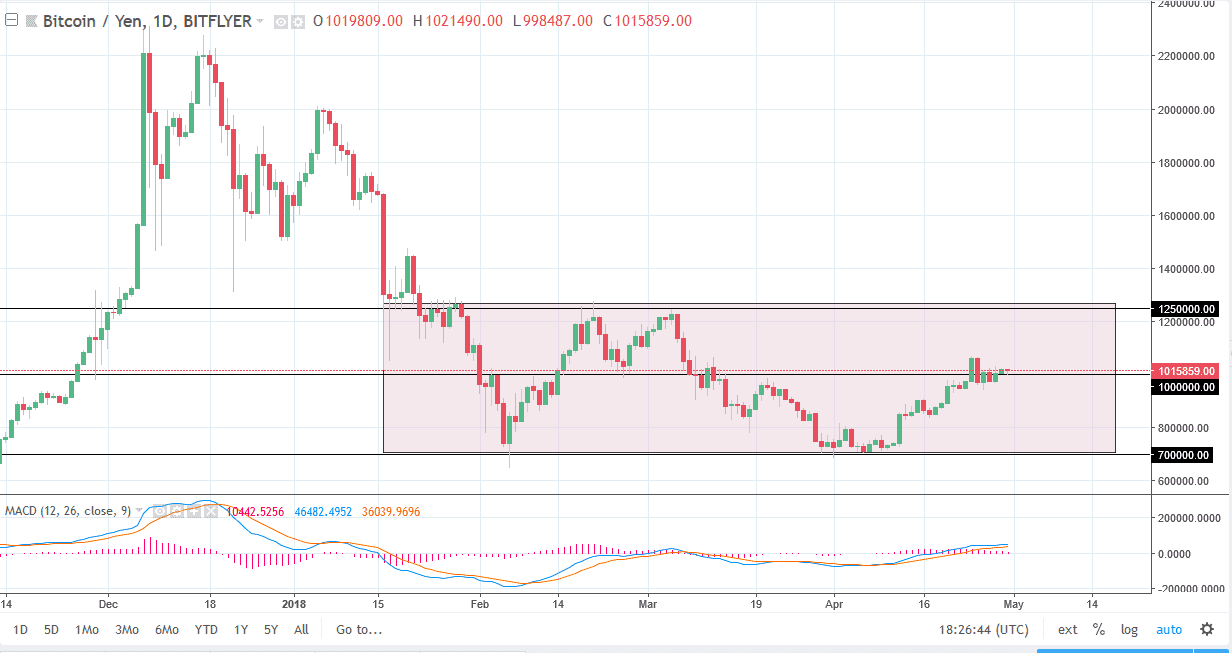 Bitcoin also did almost nothing against the Japanese yen, as we continue to hover around the ¥1 million level. That’s an area that has a lot of importance tied to it, and of course a lot of it being psychological. However, I think if we can continue to go higher, we would then go to the ¥1.25 million level. If we can break above there, the market is likely to continue much higher, perhaps reaching towards the ¥1.5 million level, and the ¥2 million level. Otherwise, we will pull back and go looking for support at the ¥700,000 level. This is a market that is consolidating and is essentially a “fair value” proposition right now, keeping big-money out.