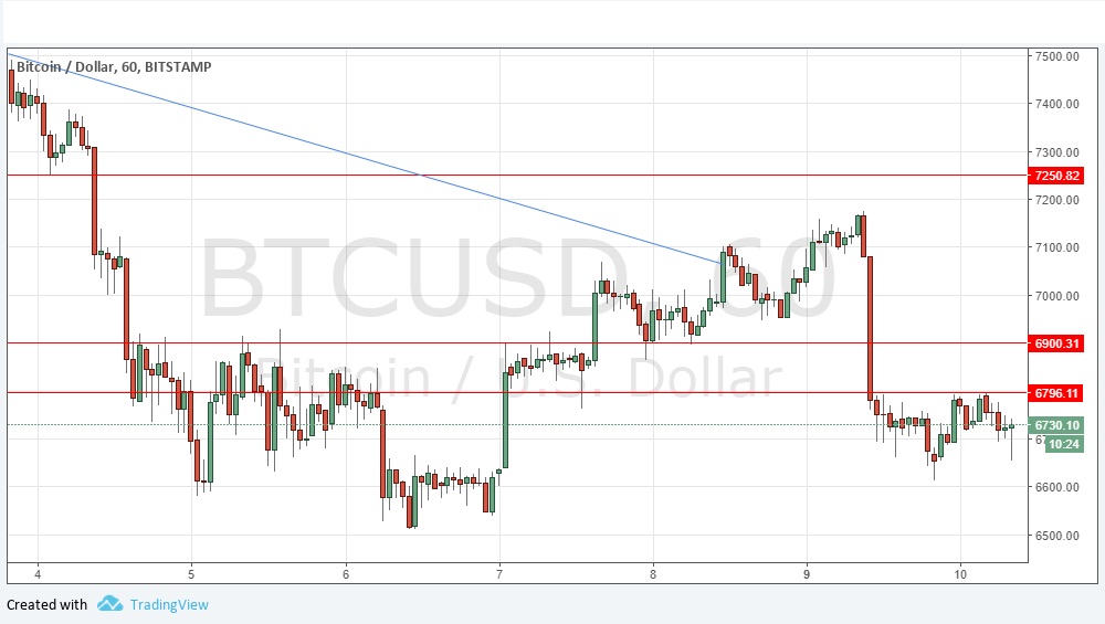 Yesterday’s signals were not triggered, as there was no bullish price action at $6,900.