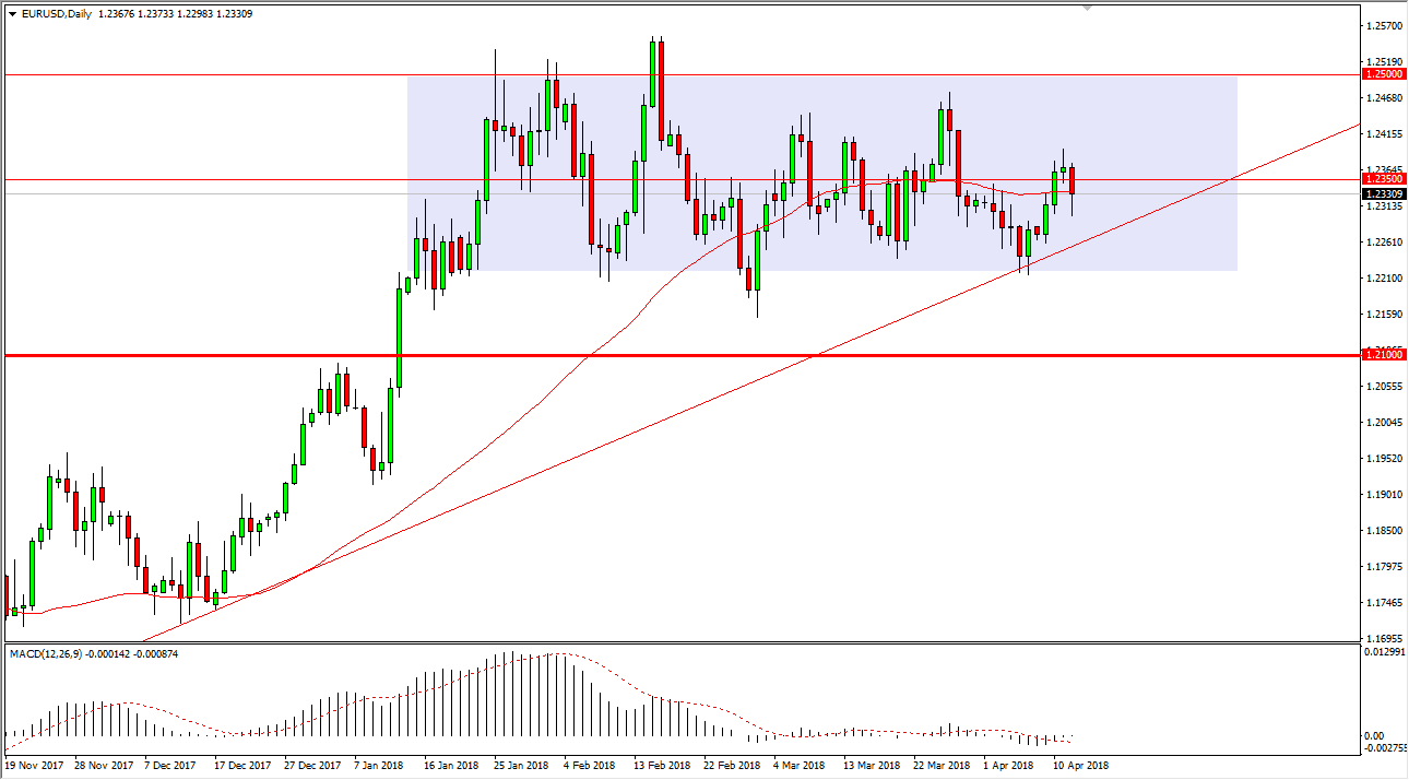 The EUR/USD pair fell during most of the session on Thursday, reaching down towards the 1.23 level. We rallied though and ended up forming a candle that suggests we could have plenty of buying pressure underneath. Ultimately, I also look at the deli uptrend line as another sign that the buyers will probably return. I recognize that the 1.25 level above continues to be massive resistance, so if we were to break above that level, then we could go much higher. I think that we will eventually find buyers that are needed for the uptrend to continue. If we were to break down below the uptrend line, we could drift down to the 1.22 handle, and then eventually the 1.21 level. I think that the market will be volatile, but I believe that every time we pull back it should represent some value that you can take advantage of.