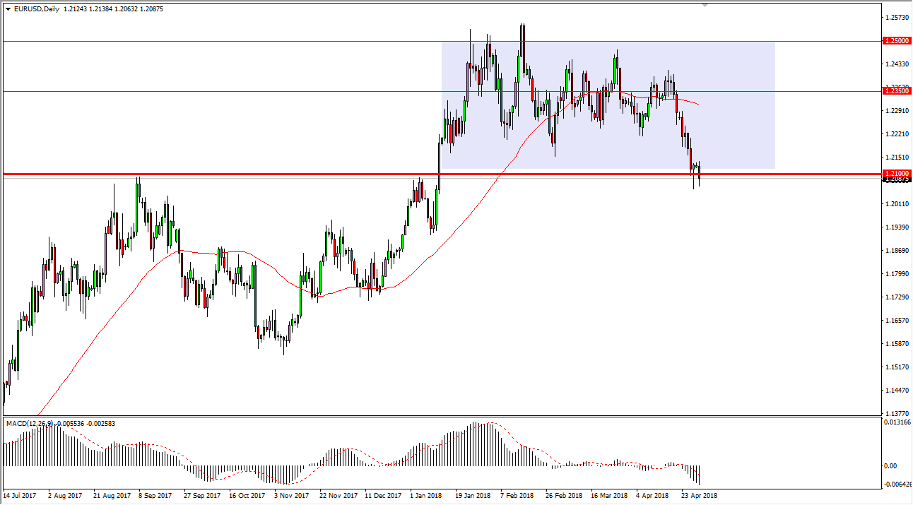 The EUR/USD pair tried to rally at the open on Monday, but then broke below the 1.21 handle. There is a significant amount of support underneath though, as this was a zone that had been so resistive in the past. If we were to break down below the 1.20 level, then I think this market unwinds, and the uptrend is all but over. I think we are waiting to see what happens next, and quite frankly I would step away from this market until we either get a bounce above the 1.2150 level, which would show signs of buyers coming in to pick up value, or a breakdown below the 1.20 level, which shows that we are falling apart, and the market should continue to go much lower. Interest rates in the United States continue to play a major role in where we go, so pay attention to those markets as well. In the short term, it’s probably best to see which way the market breaks and closes on a daily chart to start putting money to work.