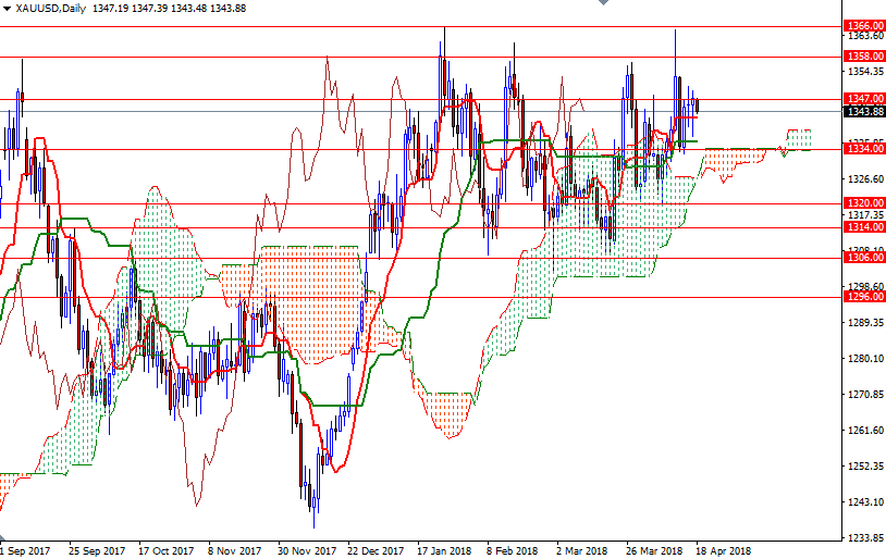 The market is trading within the borders of the Ichimoku clouds on the 4-hourly and the hourly charts, indicating sideways trading in the near term. The intra-day key levels almost remain the same as the market is trapped in a relatively narrow range. The bulls will need to confidently push prices above 1348 to tackle the next barrier in the 1353/1 zone. If this resistance is broken, the market will be aiming for 1359/8.