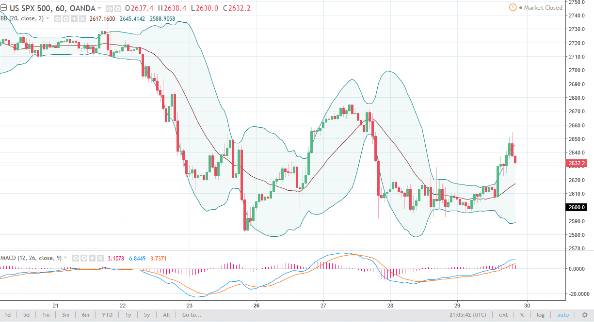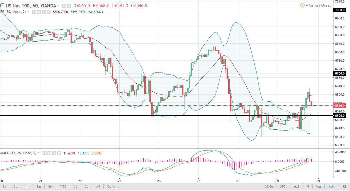 The S&P 500 tried to rally during the day on Thursday but rolled around a bit as we got near the 2655 level. Obviously, Friday was Good Friday, so there’s not much to say about that other than it has been a market that tried to rally but failed a bit. I think there’s plenty of support underneath though, and that could offer an opportunity to pick up a bit of value. If we can break above the highs from the Thursday session, we could then go higher, as it would show signs of building strength to the upside. I believe that the 2600 level underneath is the beginning of massive support, extending down to the 2500 level underneath. Ultimately, I think that the buyers will probably return. With this type of noise, I think it’s going to be difficult trading, so I would keep my position size small.