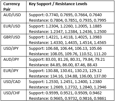 Key Support/Resistance Levels for Popular Pairs