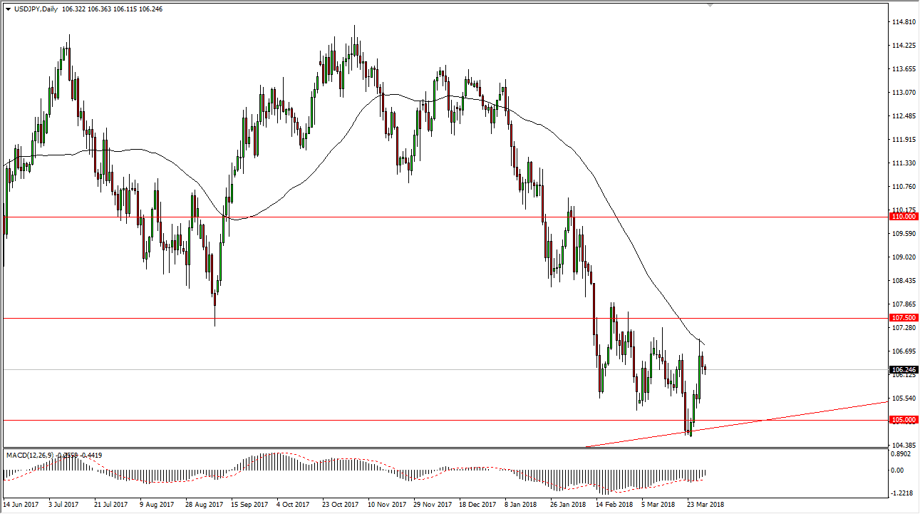 The US dollar fell slightly during the trading session on Friday, but with a lack of liquidity I would not read too much into the candlestick. Because of this, I prefer to look at the totality of the move, as we have been shopping around, and I believe that the market is going to continue to see buyers trying to jump into this market, with the 105-level offering a major “floor” in the market. There’s also an uptrend line there that we should be paying attention to, so I think that the buyers will probably come back in and pick up this market somewhere in that area. However, if we were to close to make a fresh, new low, the market should then break down towards the 101 handle. I anticipate that the market should continue to be very jittery, due to the potential of a trade war. However, I think that if we can break above the 107.50 level, then we could go much higher.