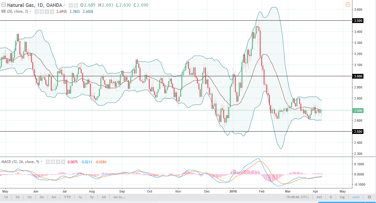 The natural gas markets initially fell during the trading session on Monday but found enough support to form a nice-looking hammer. Because of this, I think that we will bounce but I think that the $2.80 level above will offer resistance, and I think it could offer a nice opportunity to start shorting this market. On signs of exhaustion I am more than willing to get involved to the downside, but I also recognize that we could even bounce as high as the $3.00 level. That area is even more resistive and could get sellers much more aggressive. I believe that the overall oversupply of the natural gas market will continue to weigh upon how this plays out. I have no interest in buying, although I do recognize that we could get a short-term bounce. I will ignore that and simply wait for an opportunity to take advantage of the fundamental situation.