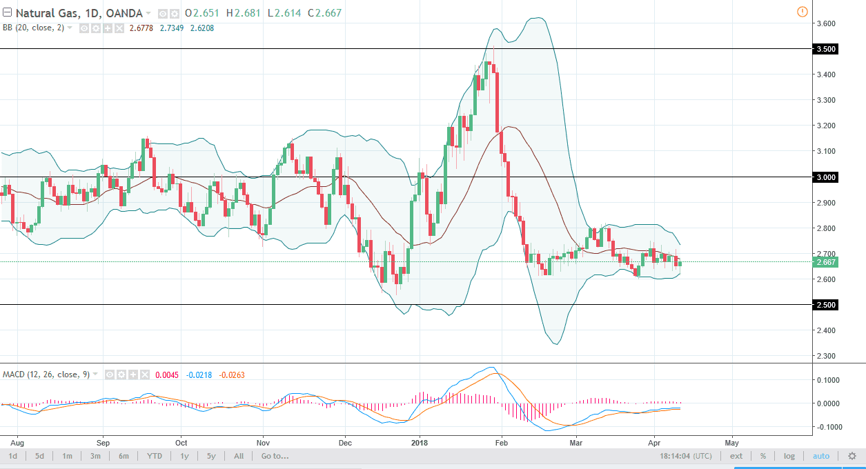 Natural gas markets initially fell during the trading session on Wednesday but found enough support underneath to turn around and form a hammer. I believe that the market has plenty of resistance above, so I think that if we rally from here we could find sellers near the $2.75 level. Ultimately, I think that we will continue to see a lot of choppiness, and therefore I think that this market shows itself as offering a lot of opportunity to short-term traders, especially on rallies that show signs of exhaustion on one-hour charts. Alternately, if we can break down below the $2.60 level, I think that the market could drift down to the $2.50 level. A breakdown below that level would be catastrophic, but I don’t think that happens anytime soon. I believe that this continues to be a “sell the rallies” situation.