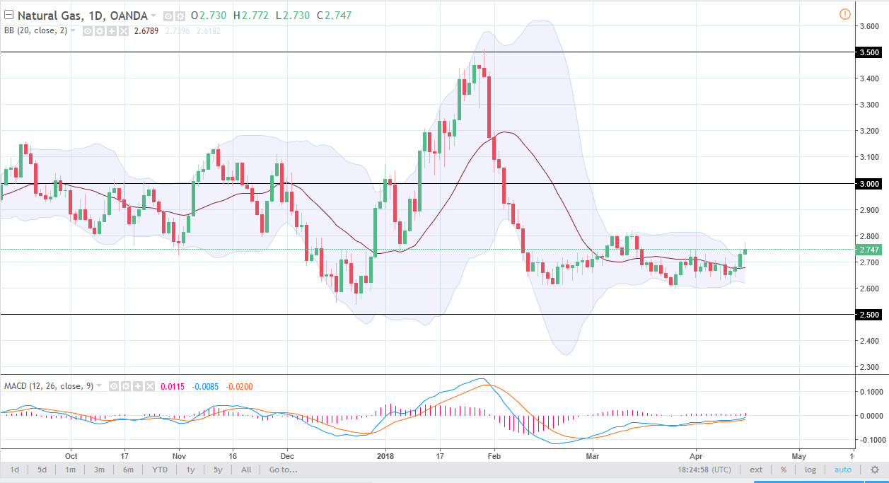 Natural gas markets rally during the day on Monday as well but gave back about half of the gains for the session to turn around and form a shooting star. The shooting star is a negative candle, and as we are getting close to the overall range that we have been in for the last several weeks, I like the idea of shorting this market and trying to get back to the $2.65 region. If we broke above the $2.80 level, you will probably go looking towards the $3.00 level, but at this point I’m looking to sell, not buying this market. There is an overabundance of natural gas around the world, most notably in North America, and I think that will continue to cause a major issue with pricing in this market. I sell exhaustion, I have no interest in buying natural gas.