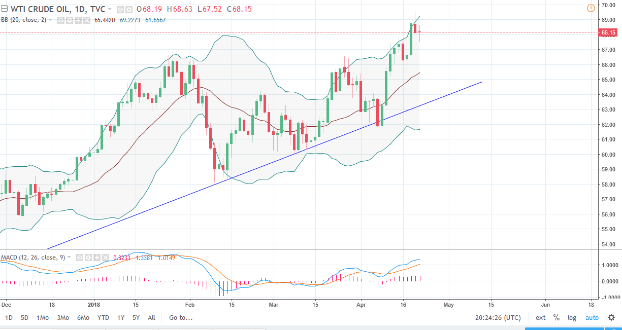 The WTI Crude Oil market has gone back and forth during the session on Friday, settling on a neutral candle. The market looks likely to continue to go back and forth, although I think that the overall attitude of the market is still bullish. I think that there is a lot of support underneath, starting at the $66 level, and then possibly even lower than that at the uptrend line. I think that the $70 level will be a target, but it’s going to take a lot of work to get up there. I think that short-term pullback should continue to offer value the people are willing to take advantage of, especially considering that there is a lot of tension in the Middle East right now. I think that we will continue to see buyers jump in every time we drift lower.