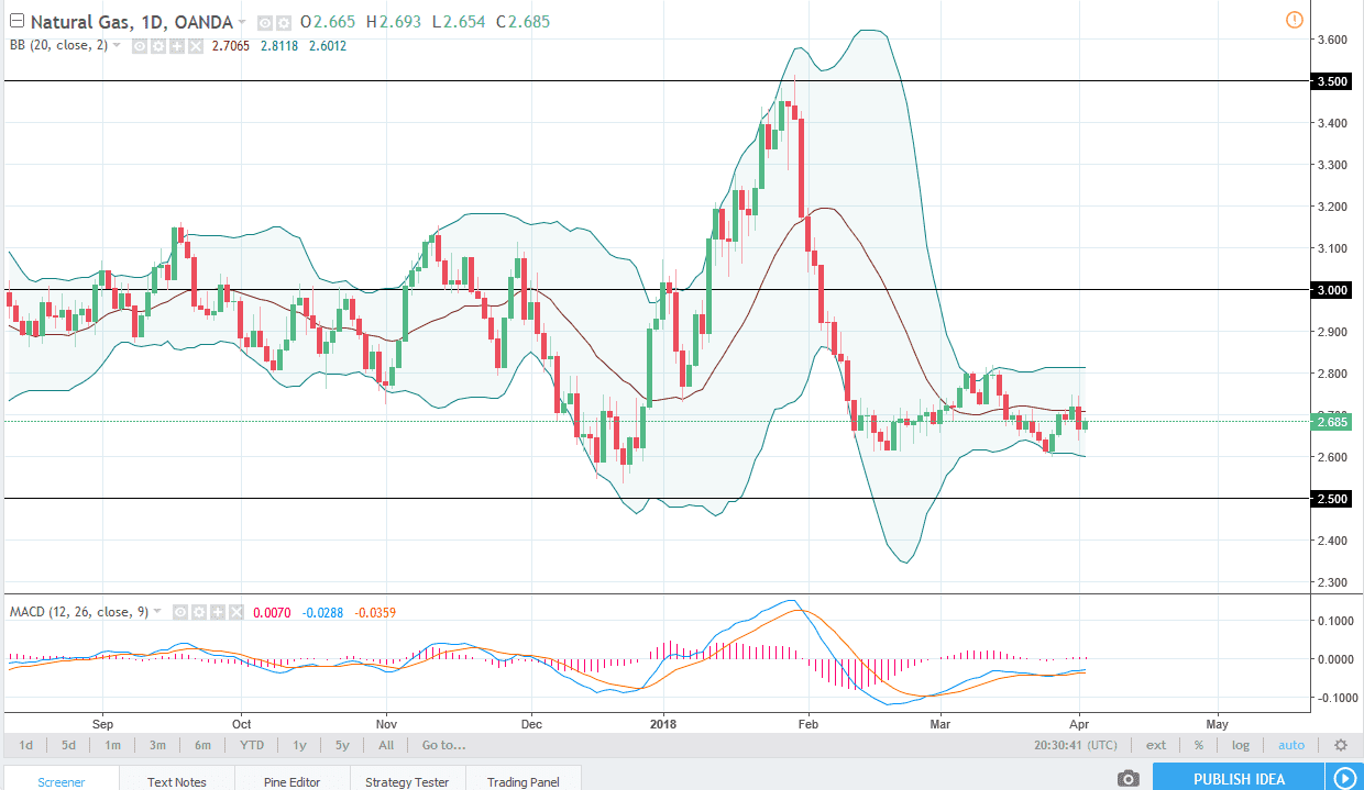 Natural gas markets rallied a bit during the trading session on Tuesday, but there is still a major bearish attitude to this market, as the $2.80 level continues to be massive in its implications. I think that if we rally from here, it’s only a matter of time before the sellers return. If we can break above the $2.80 level, the next major barrier would be near the $3.00 level, where I expect to see more sellers come back into the marketplace. I believe that the $2.50 level underneath is a massive “floor” in the market and should keep this market somewhat afloat in the meantime, but if we did breakdown below there, things could get extraordinarily bearish with the quickness. I still suspect that rallies will be faded.