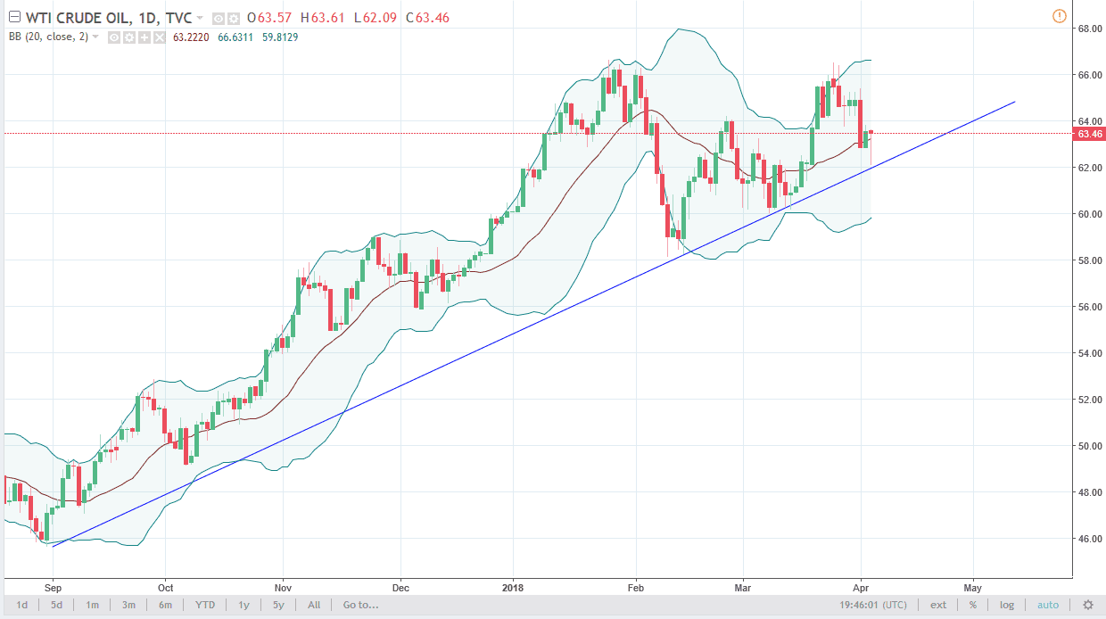 The WTI Crude Oil market fell significantly during the trading session on Wednesday, reaching down to the previous uptrend line that has been keeping this market afloat. I think that the market will continue to be very noisy in general, and especially with the jobs number coming out on Friday. I think that the market continues to find buyers, and that we will eventually reach towards the $66 level above. If we break down below the bottom of the uptrend line, the market probably drops down to the $60 level after that. Ultimately, this is a market that that will remain noisy, but we are in an uptrend, at least so far. I believe that the market will continue to offer opportunities underneath, at least until we get some type of negativity coming out from the headlines. The inventory number this week was rather bullish, so I think this move makes sense.