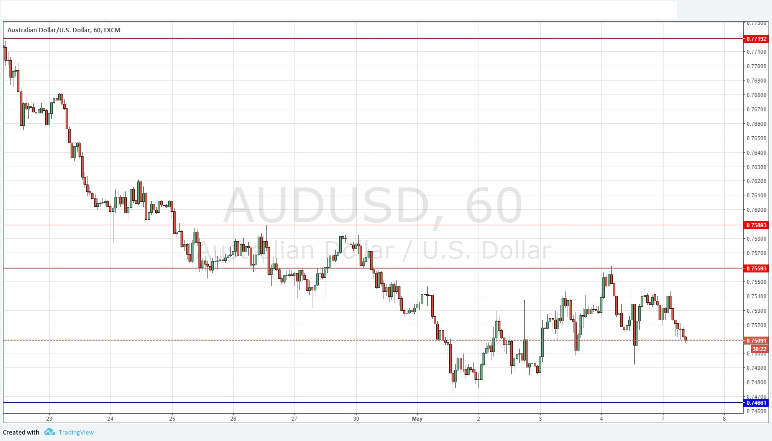 I had no bias last Thursday. As it happened, there was a nice short trade possible later that day during the Asian session, with a bearish reversal at the nearest resistance level of 0.7559. It looks less and less likely that we are going to see a major bullish reversal in this psychologically key area of 0.7500. At the time of writing, the action is looking bearish, suggesting lower prices are going to happen today following the selling at the “shoulder” of 0.7540. If so, it will be interesting to see what will happen as the price approached the nearest support at 0.7466. The Australian data due later might have an impact. I have a mildly bearish bias, at least until the Australian data release.