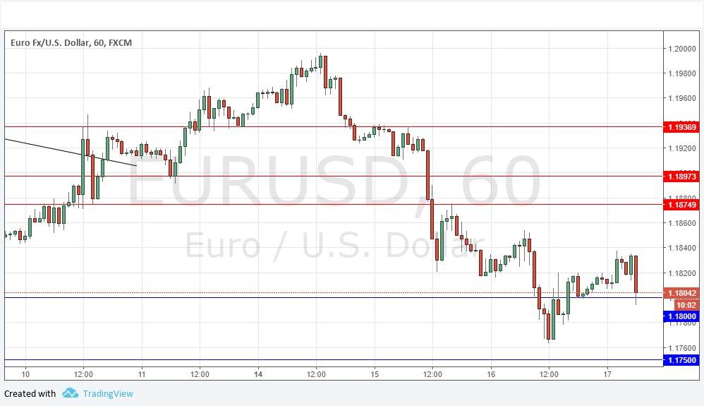 Despite the long-term bearish trend, we are quite likely to not see any significant further move down today, as the price has reached and seemingly bottomed out at a key cluster of support levels close to 1.1800. If the price should retrace to 1.1875, this could give a very nice opportunity for another short trade entry.