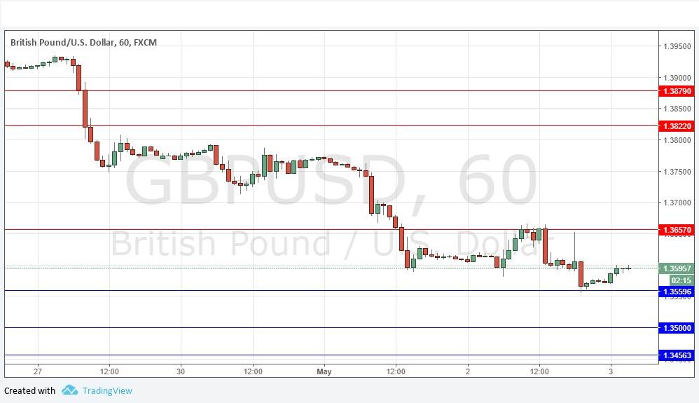 Go long following a bullish price action reversal on the H1 time frame immediately upon the next touch of 1.3560 or 1.3500.