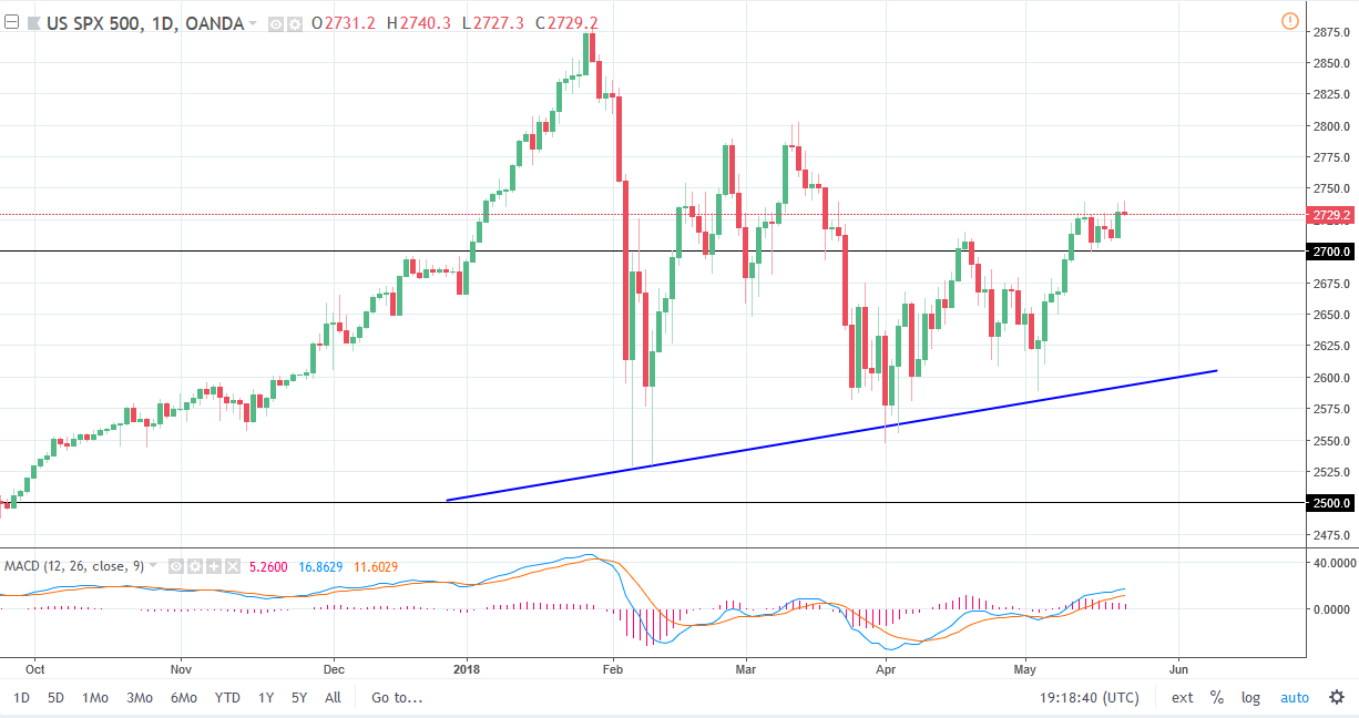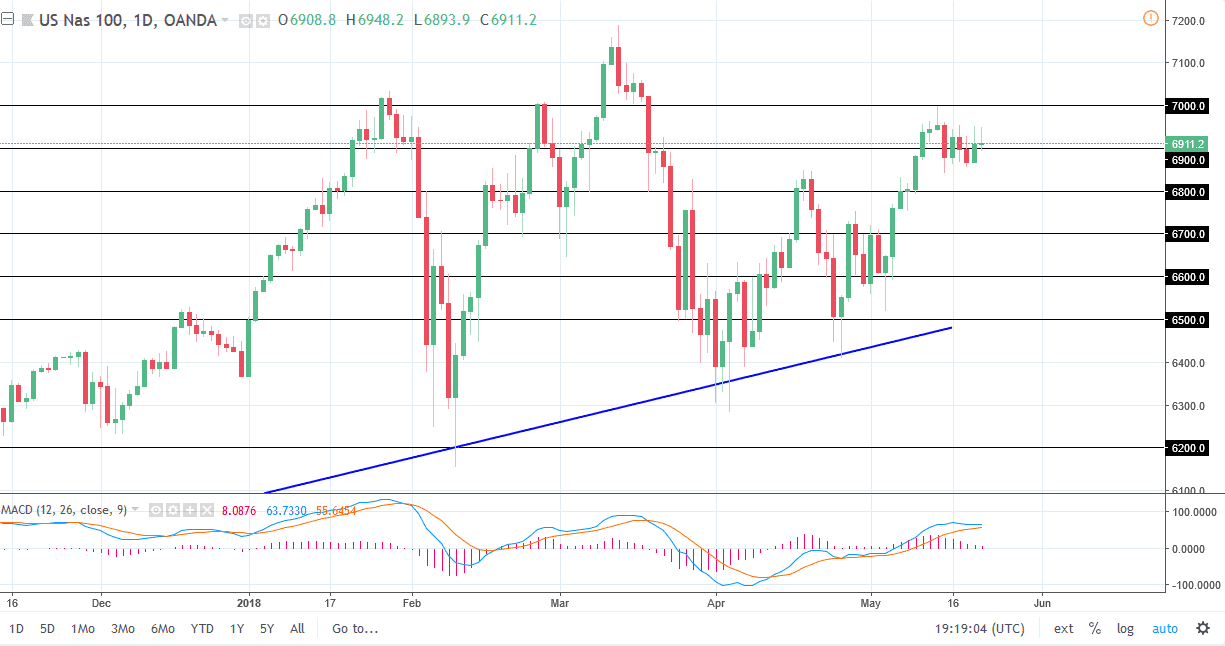 The S&P 500 tried to rally during the day on Tuesday but found enough resistance above to turn the market around at the 2740 handle. By doing so, we ended up forming a bit of shooting star and it looks as if we are ready to continue consolidating. I believe that we have plenty of support below the 2700 level though, and that this is simply the market trying to build up enough momentum to go higher. Even if we did break down below the 2700 level, we have recently made a couple of “higher highs”, and that tells me that the momentum is starting to shift to the upside again. I don’t have any interest in shorting this market, and I look at short-term pullbacks as potential buying opportunities as they offer value.