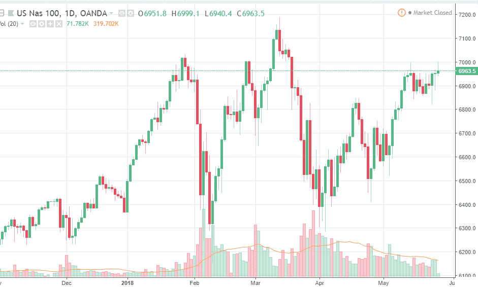 The NASDAQ 100 rallied initially during the day on Friday but gave up most of the gains to turn around and form a shooting star. This of course is a very negative sign and it shows that the 7000 level continues offer significant resistance. However, this is a market that has been very strong to the upside as of late and I think that this might end up being a nice buying opportunity. In the end though, remember that it is Memorial Day today, so any trading that you see in the CFD market does not have the underlying market pushing at higher lower. In other words, this is a somewhat artificial market during the day. Longer-term though, I do think that any pullback will be looked at as value and people will be looking to take advantage of that.