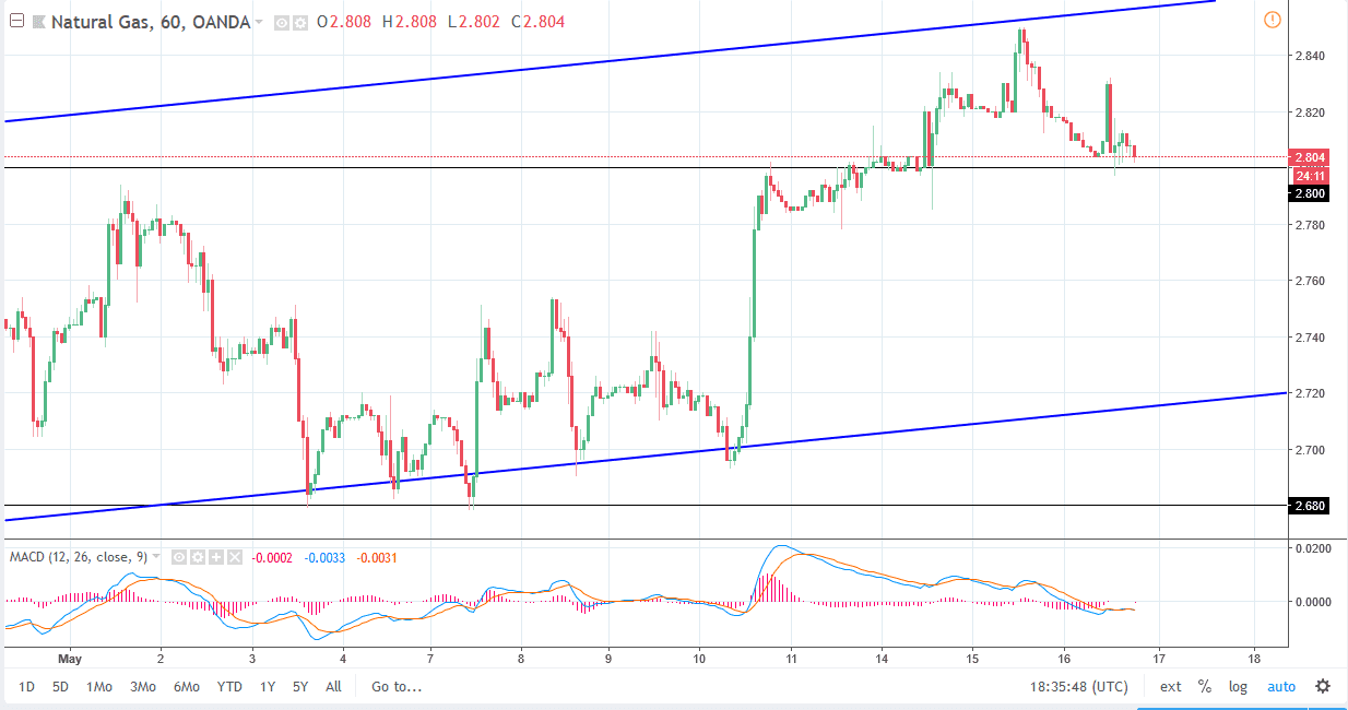 The natural gas markets initially tried to rally during the day on Wednesday but found enough resistance at the $2.83 level to turn around and fall. The $2.80 level looks to be very supportive though, and I think it’s only a matter of time before we rally. Ultimately, I think that the market should continue to go to the $2.85 level, an area that could be thought of as the top of an up-trending channel, and I think that if we were to break above there, the market could enter more of a “blow off” phase. In general, I think that short-term pullbacks should continue to show plenty of support at the $2.78 level underneath. Ultimately, this is a market that I think if we can stay above the $2.78 level, the only thing you can do is buy this market.