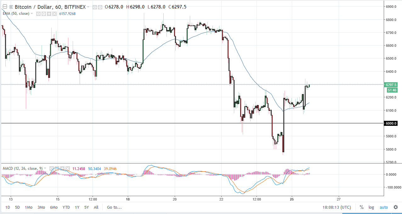 Bitcoin has been very bullish during the day, as traders came back from the weekend to start buying again. The $6000 level course has offered a lot of interest as one would expect, and I think this bounce makes a significant amount of sense based upon a certain amount around number theory. However, we are still very bearish overall, and I think that the bounce that we are seeing is probably a short-term rally at best. I see plenty of resistance above at the 6800 level. At the first signs of exhaustion, I would start selling again as I think that as we have recently made a fresh, new low, it’s time to start getting short again. I don’t have any interest in buying Bitcoin, because quite frankly we have not had a long enough range of stability for people to be comfortable. The first signs of trouble will probably have a lot of people scared to death to own this market.