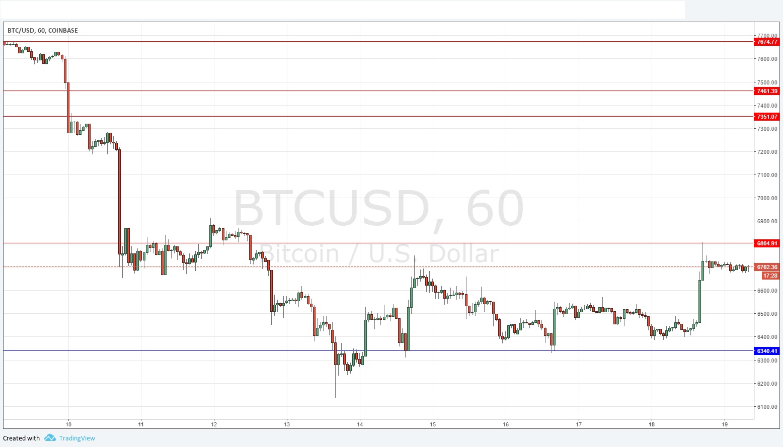 Yesterday’s signals were not triggered as the bearish price action took place a little way above the resistance level identified at $6,696.