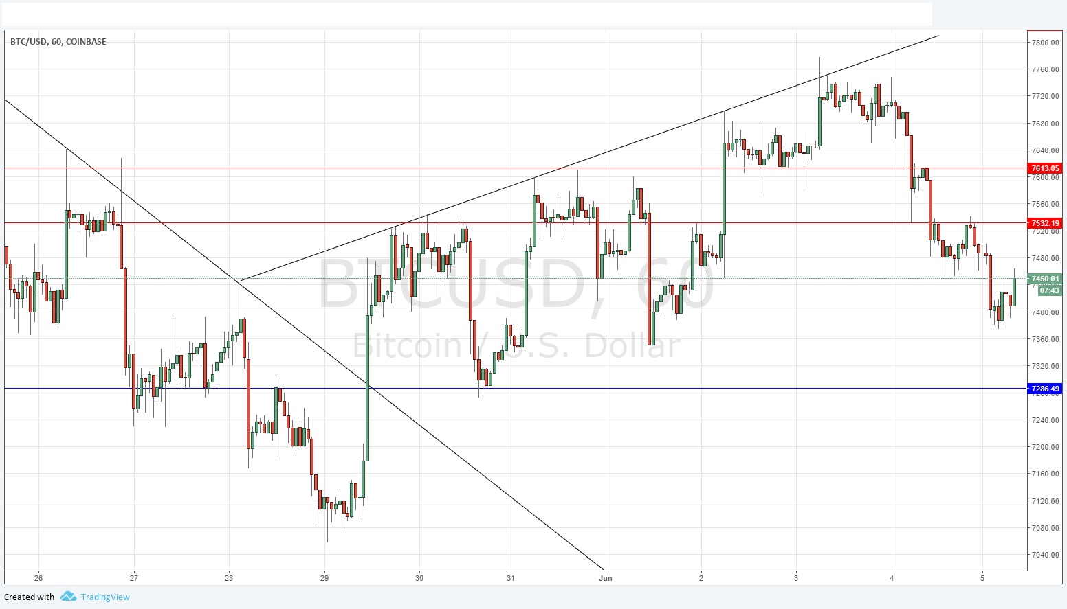 Yesterday’s signals were not triggered, as there was no bullish price action at $7,287.