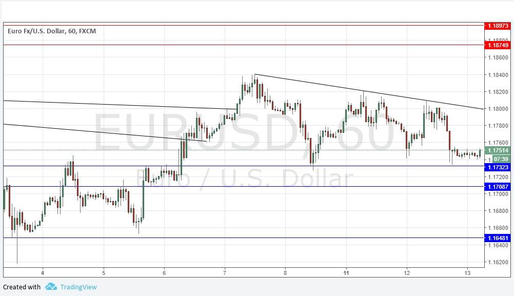 I wrote yesterday that I did not see the price as truly ready to move down significantly, and that the day’s movement would probably be dominated by the U.S. inflation data. I think I was right on both, as the nearest support level at 1.1732 held and as the U.S. data was exactly as expected. However, the picture does look a little more bearish today, with the price dropping down to approach 1.1732 again and looking a little heavy. The major event of this week is due later after London closes, the FOMC releases, and I think the support level at 1.1732 will more or less hold until that data comes out. The price could then move anywhere, strongly. I have no directional bias today beyond expecting the supportive area to hold over the coming hours.