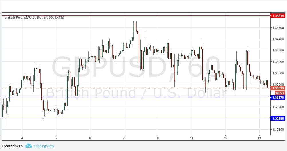 Go long following a bullish price action reversal on the H1 time frame immediately upon the next touch of 1.3338 or 1.3300.