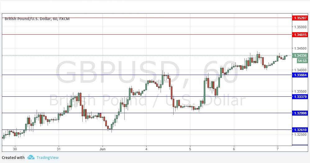I had no directional bias yesterday, but I noted that a continuing upwards move would not be a surprise following the bullish break of 1.3409. The price is rising with a clear sequence of higher lows and highs, and has room to rise further, to at least 1.3482. However, looking at the bigger picture, the Pound is not making the gains against the Dollar that some other currencies are, particularly the Euro, which suggests this is not the correct pair to be trading to be short of the U.S. Dollar right now. There is still a long-term bearish trend, and if the U.S. Dollar starts to strengthen, it will probably do so relatively strongly against the Pound. Above the current price near to the first resistance level is also the psychologically important round number of 1.3500 which could be another factor preventing much more of a rise. I have no directional bias here today, but if I must guess, I think an upwards move is most likely to happen as the action does suggest still higher prices.