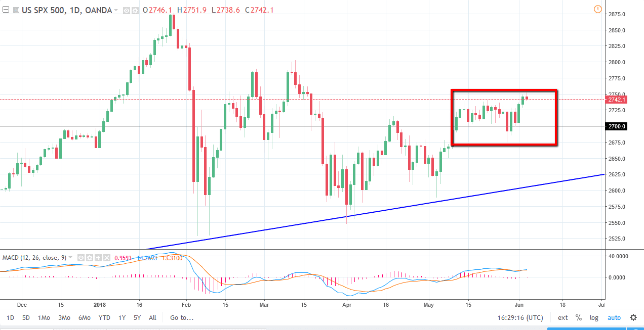 The S&P 500 initially tried to rally during the trading session on Tuesday but found enough resistance at the 2750 level to turn around. There is a significant amount of support underneath though, and I think it’s only a matter time before the buyers get involved. I believe that the 2700 level is psychologically important, and that it extends down to the 2675 level. Beyond that, there is a major uptrend line that should continue to keep the market afloat. I think that the alternate scenario is that we break above the top of the shooting star, which of course shows strength as well. I do believe that the S&P 500 continues to climb, but we may need to pullback to find a bit of value first. There are a lot of moving pieces around the world, not the least of which would be talks of trade wars, so expect volatility.